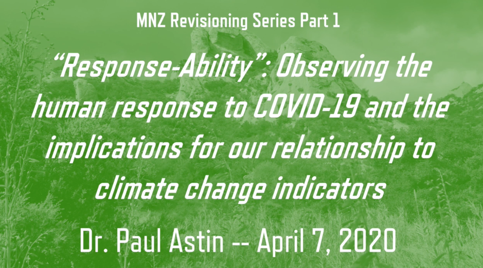 'Response-Ability' (April 7, 2020) - The human response to COVID-19 and implications for our relationship to climate change indicators," a 12-minute video-blog by Dr. Paul, produced during the spring break, with some philosophical overtones (and political undertones). Enjoy.